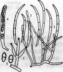 1.分生孢子梗 2.大型分生孢子 3.小型分生孢子