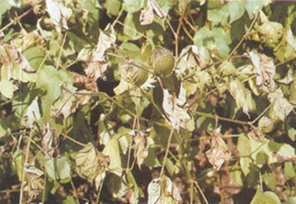 2.耕作栽培 連作棉田土壤中積累大量病菌,發(fā)病嚴(yán)重。偏施氮肥或施用帶菌土雜肥往往 加重病害的發(fā)生。大水漫灌有利于病菌的傳播和病害的發(fā)生。