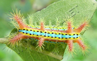 以幼蟲(chóng)咬食葉片為害,體上刺毛觸及人體皮膚引起紅腫癢痛,嚴(yán)重時(shí)發(fā)生皮炎,影響茶葉產(chǎn)量和茶園管理。雌蛾產(chǎn)卵于葉背,幼蟲(chóng)孵化后在葉背群集并取食葉肉,半月后分散為害,取食葉片。低齡幼蟲(chóng)咬食下表皮和葉肉,成長(zhǎng)后自葉尖咬食葉片成平直缺口,如刀切,嚴(yán)重時(shí)僅殘留表皮和葉脈。