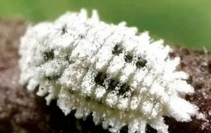 若蟲(chóng):雌若蟲(chóng)共3齡,雄若蟲(chóng)僅有2齡。一齡橢圓形,淡紫色,長(zhǎng)為0.20?0.39mm,足發(fā)達(dá),腹末有2尾毛,后期體被白蠟。二齡轉(zhuǎn)黃至橙黃色,長(zhǎng)為0.36?0.92mm,足消失,背面蠟質(zhì)形成白色介殼,前端殼點(diǎn)淺褐色。三齡(雌)梨形,淡黃色,腹末三、四節(jié)前拱,介殼灰白色,且較寬大。